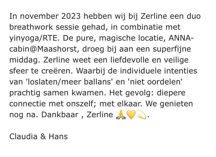 Voor als je benieuwd bent hoe anderen mijn begeleiding - lessen - ademcirkel - podcast - One Day Retreat ervaren.